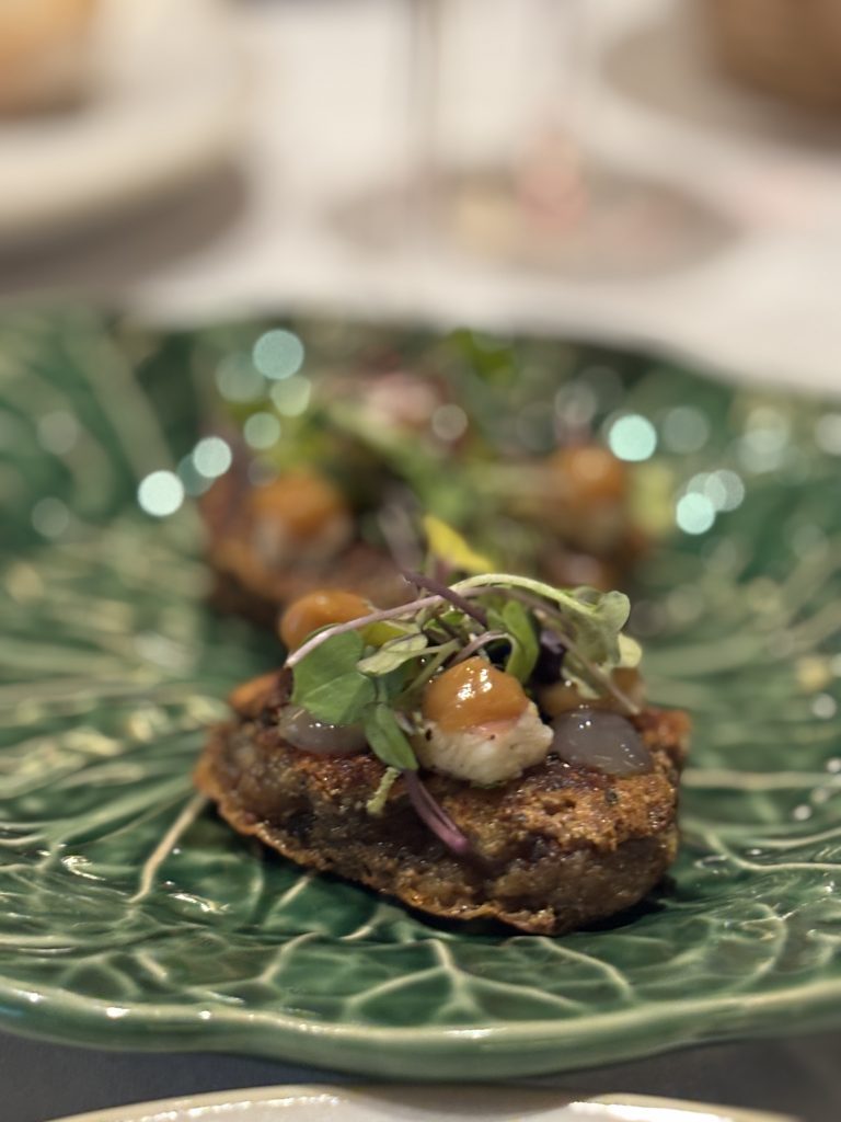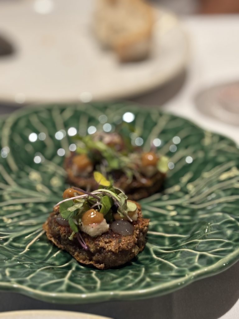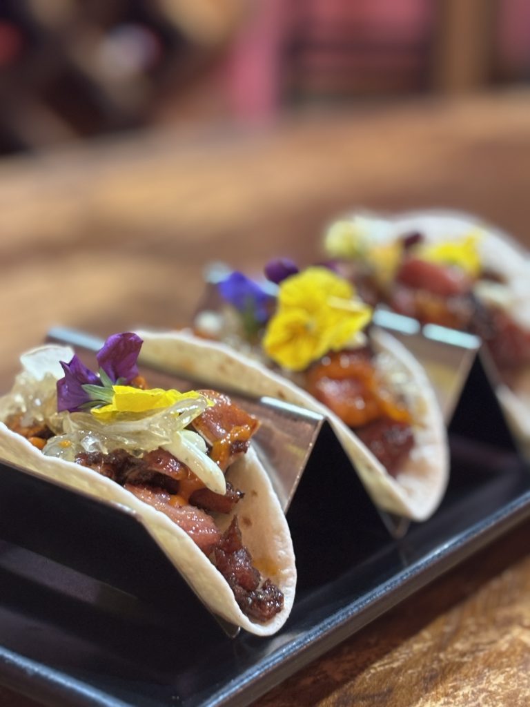 Tapa: Tacos de molleja de ternera con mahonesa de chimichurri, ensalada de col y manzana verde.