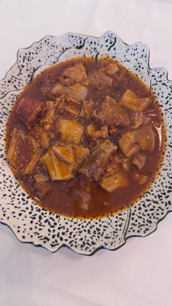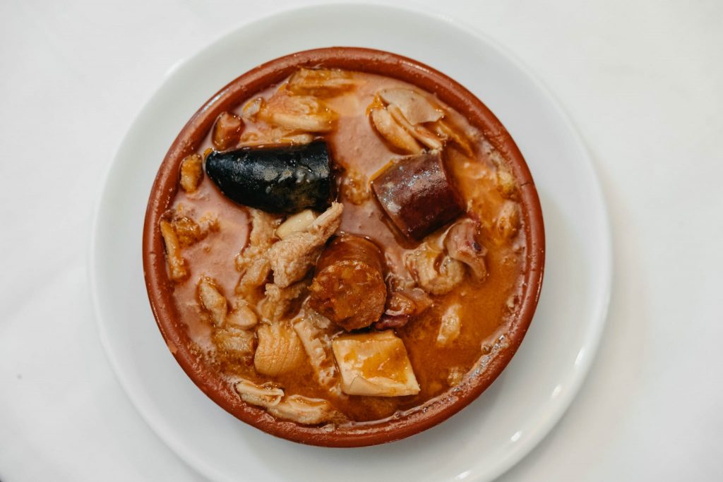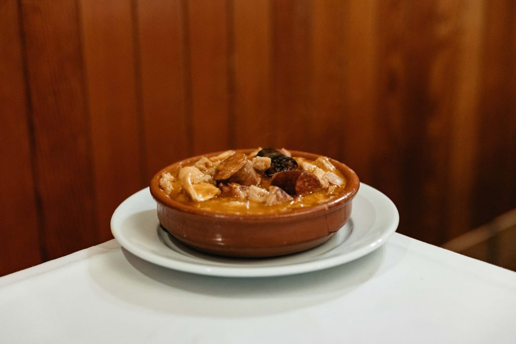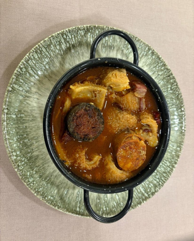 «Los de siempre» Receta tradicional desde 1942. Guiso lento de callos, morro y pata, ligado con chorizo y morcilla asturiana, servido en cazuela de barro como manda la tradición.