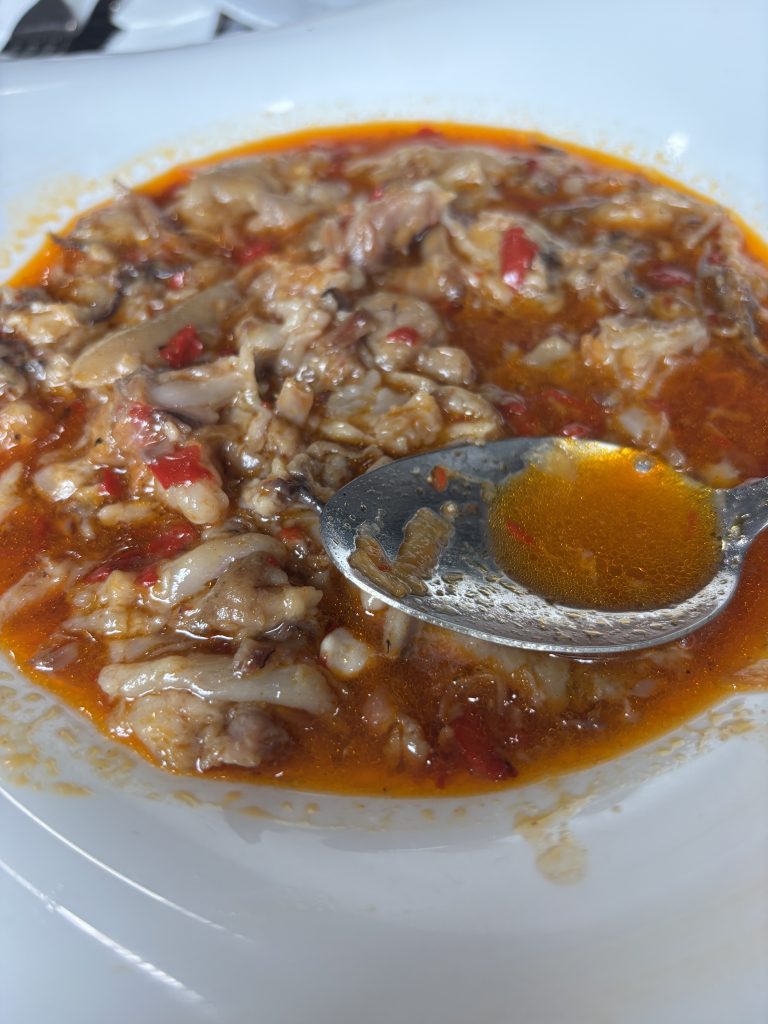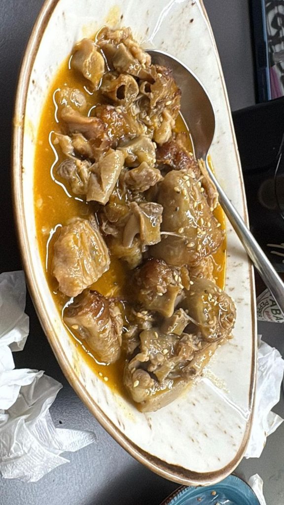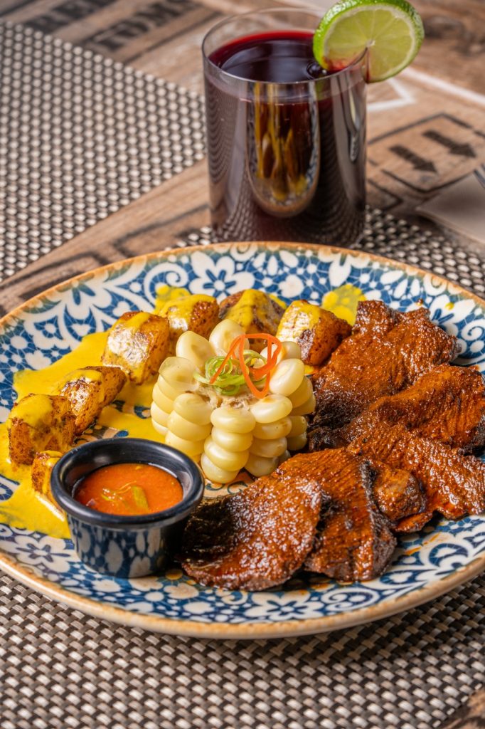 Plato: Ají de librillo crudo, Tripas con ensalada, Huevo con callos con salsa de maní