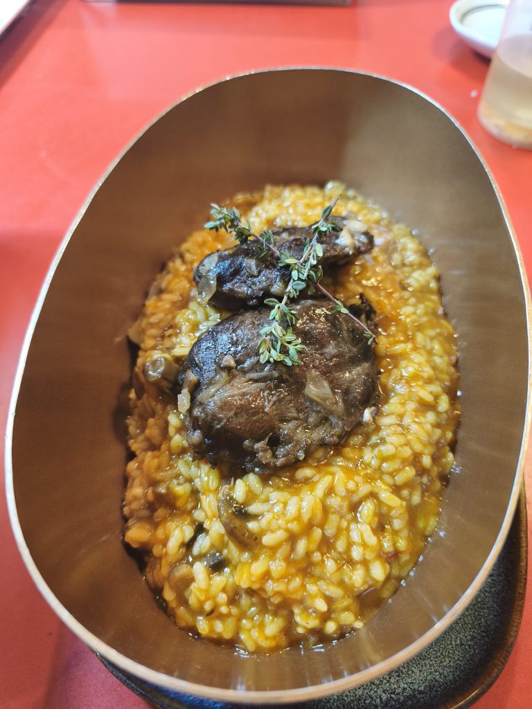 Plato Arroz meloso con carrilleras ibéricas de bellota y setas