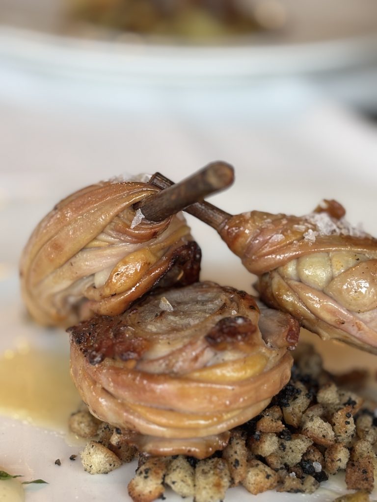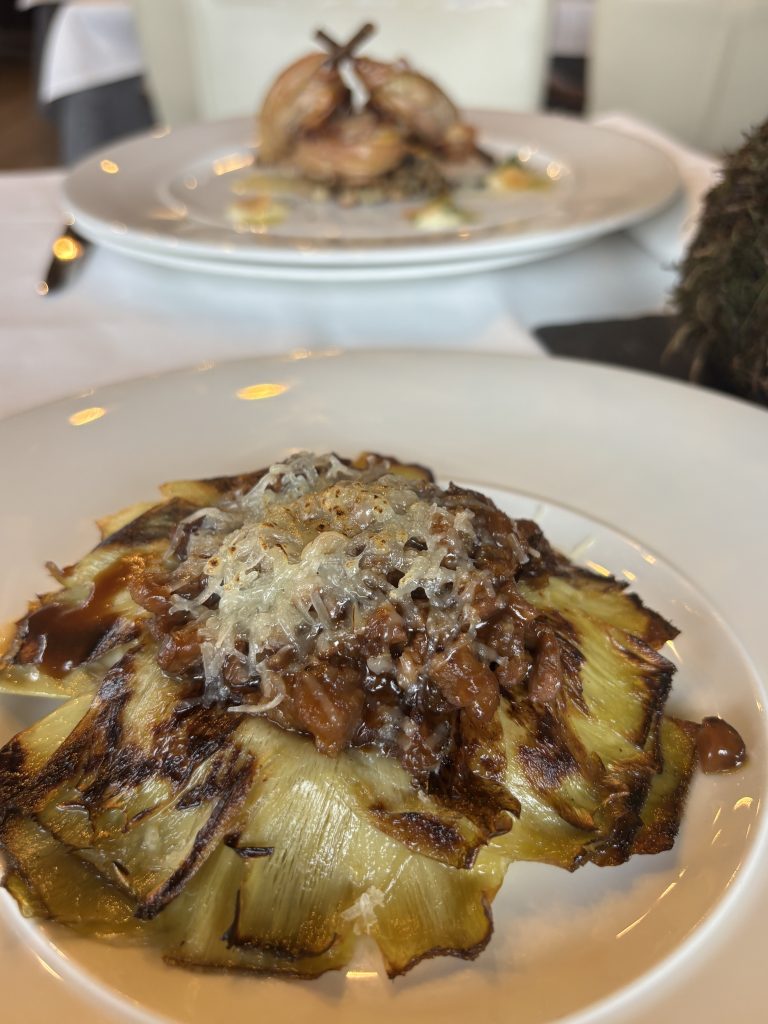 Tapa: Alcachofa rellena de rabo de toro y parmentier de Idiazábal