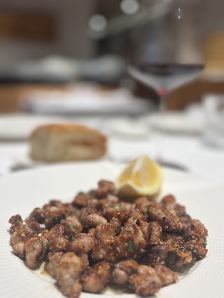 Plato Rabito cerdo lacado Cebolla, ajo, laurel, pimienta, sal, soja, kimchi, salsa brava, semillas. 13,5 €