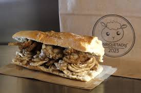 Tapa: BIKINI DE MINUTEJOS CON QUESO DE ABREDO Y SALSA BRAVA4€( Oreja, pan, queso, salsa brava) 4€